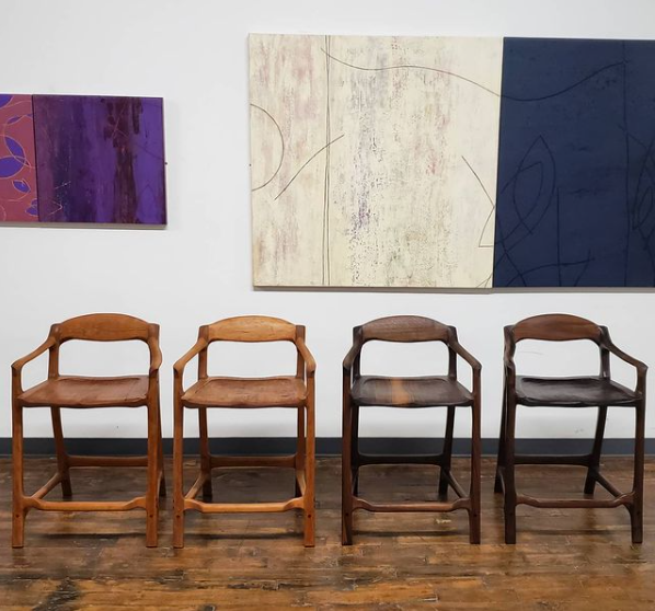Two cherry and two walnut bar stools, hand sculpted and shaped in the style of Sam Maloof featuring Maloof joinery.